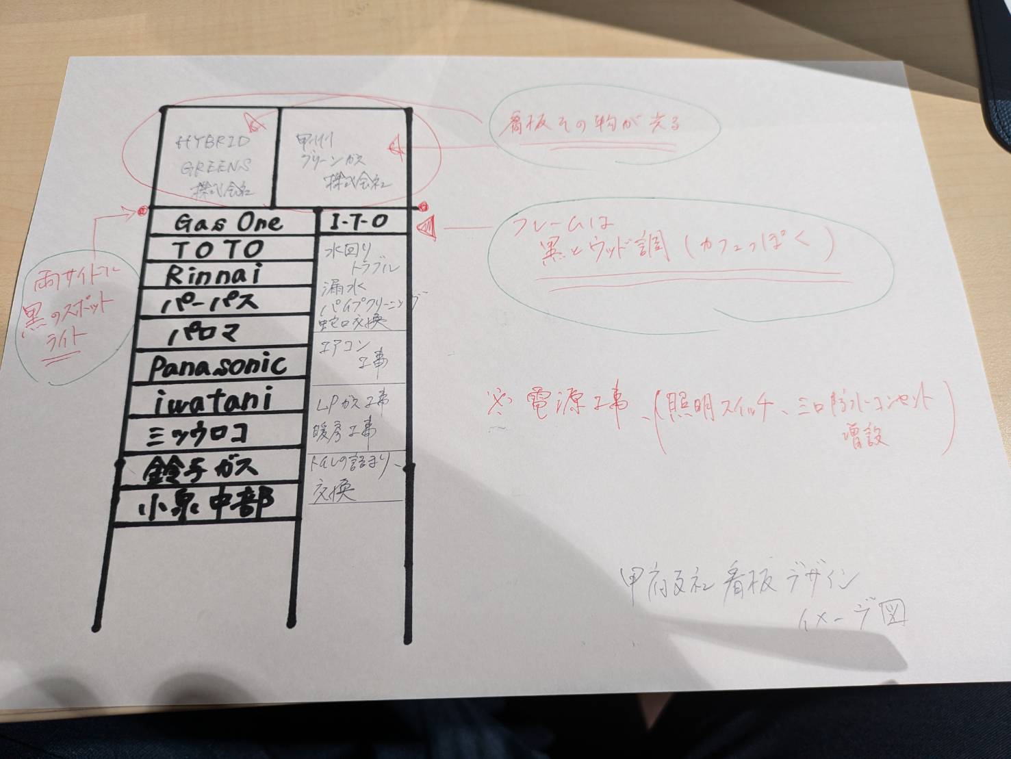 現在、ミーティングルーム/ポールの看板の制作を進めています。上記の図は、看板の設計案です。